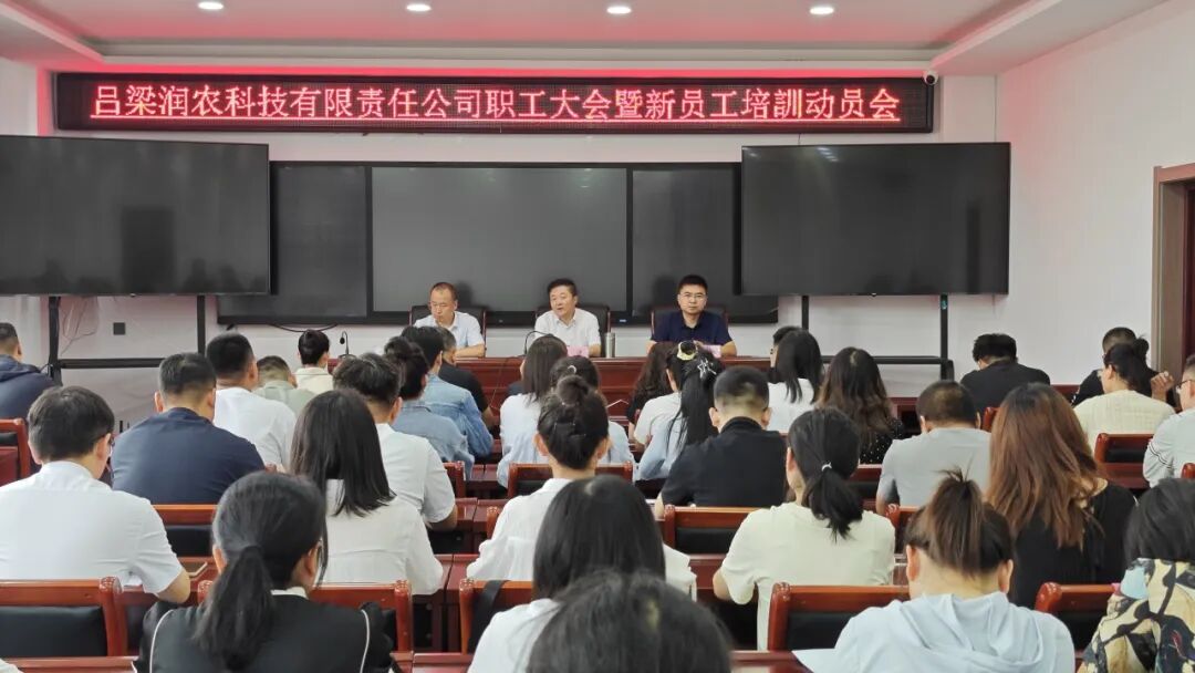 盛夏以澜,清秋将至。为促进新员工深入了解公司企业文化,更好地适应新的工作环境,增强其岗位胜任能力,8月8日上午,吕梁润农科技有限责任公司召开了职工大会暨新员工培训动员会。公司副总经理李耀华主持本次会议,公司副总经理张钰江宣读《吕梁润农科技有限责任公司员工优化岗位设置名单》,公司董事长兼总经理薛波出席本次会议并做重要讲话,成功拉开了入职岗前培训的序幕。